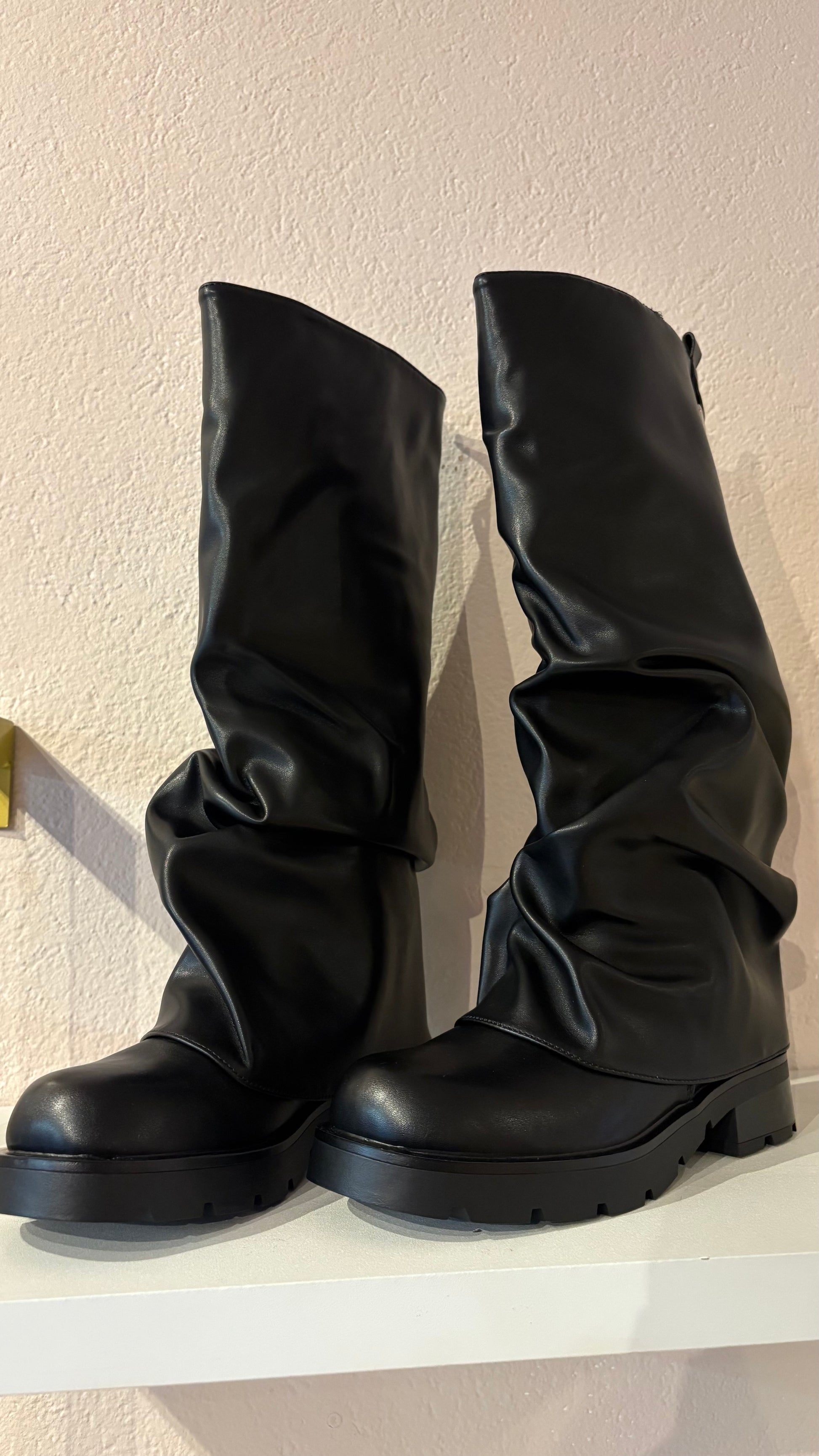 Anfibi in ecopelle con ghetta risvoltata